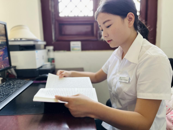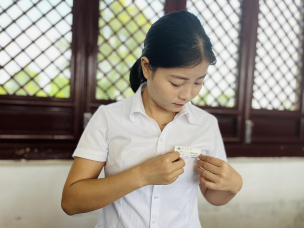 宋琦做好講解員崗前準(zhǔn)備工作并佩戴工牌